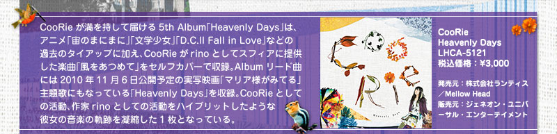 13.Heavenly Days 作詞/作曲:rino 編曲:大久保薫(実写映画「マリア様がみてる」主題歌)