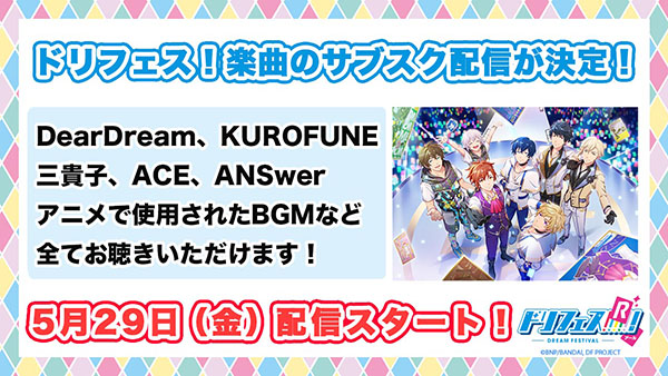5次元アイドル応援プロジェクト『ドリフェス!』の楽曲が、主要サブスクリプション型(定額制)配信サービスにて5月29日(金)より配信決定!
