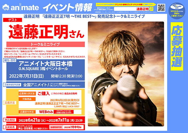 遠藤正明 「遠藤正正正T明 ~THE BEST~」の発売を記念したトーク&ミニライブの開催が決定!