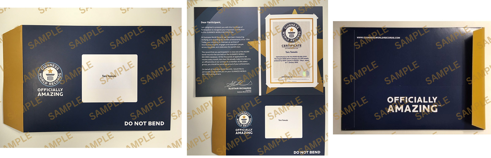 - 記録挑戦失敗時はギネス世界記録ホルダーロゴ入りではなくギネス世界記録チャレンジロゴに変更となります。