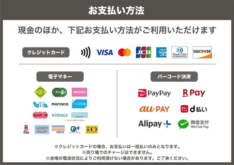 ※当日、やむを得ない事情等でクレジットカード、電子マネー決済、QRコード決済のご利用を中止させていただく場合がございます。
