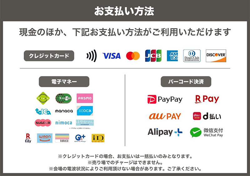 ※会場でのチャージ・充電はできません。事前に残高のご確認・チャージ等をお願いいたします。