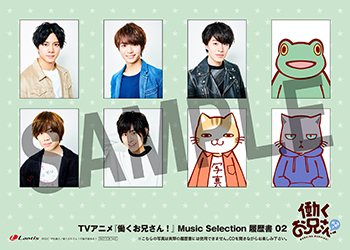 →TVアニメ『働くお兄さん!』Music Selection 履歴書 01・02をご購入頂いたお客様にそれぞれブロマイドを1枚プレゼント!