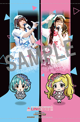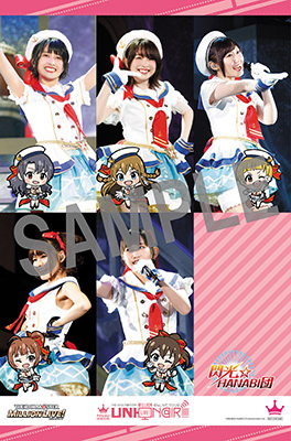 2L判ブロマイドフォルダー(ロゴ・モチーフデザイン使用) + B2タペストリー(キャスト写真&ミニキャライラスト使用) + A4クリアファイル(ミニキャライラスト使用)