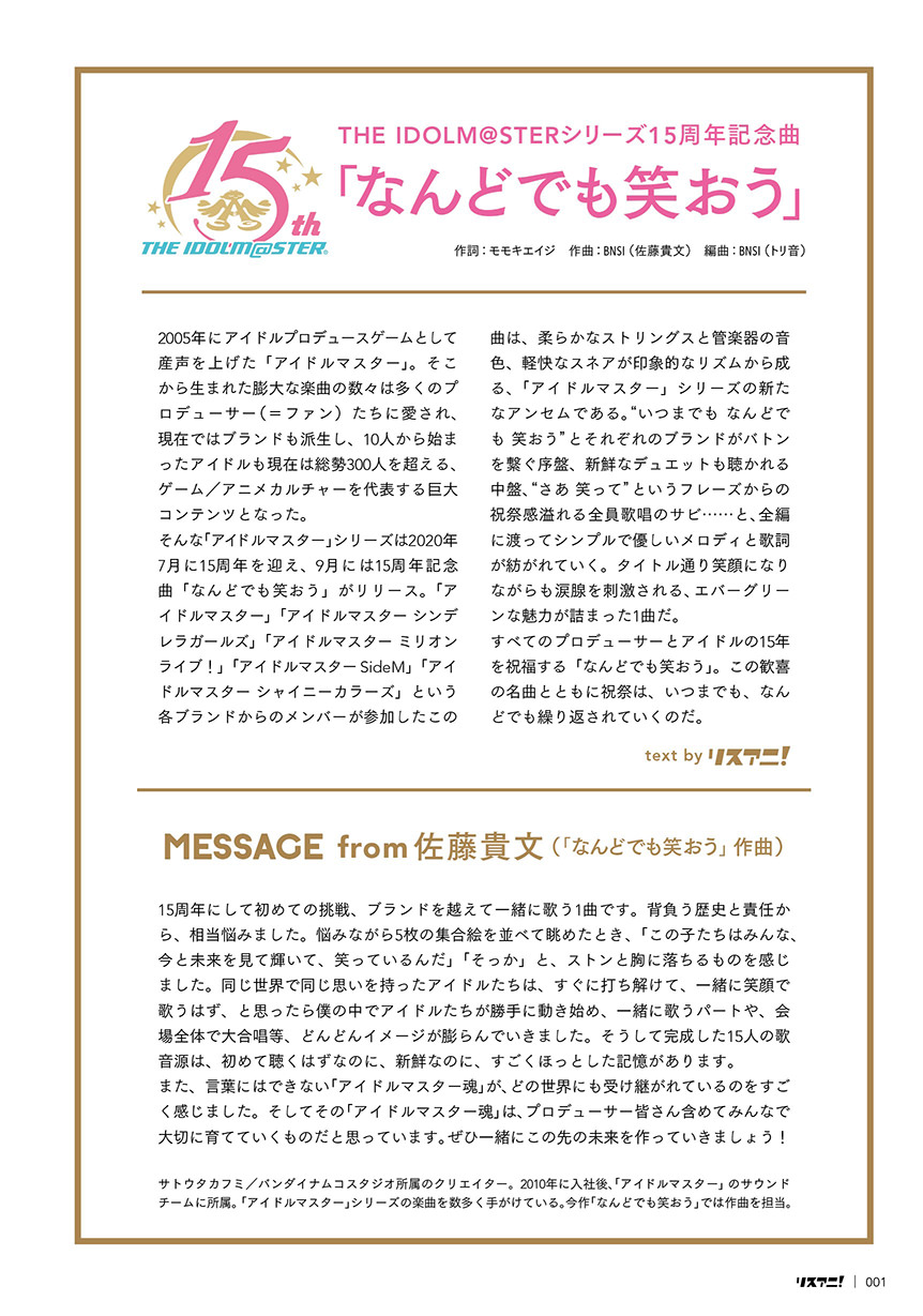 『リスアニ!×THE IDOLM@STERシリーズ15周年記念楽曲「なんどでも笑おう」発売記念スペシャル小冊子』が