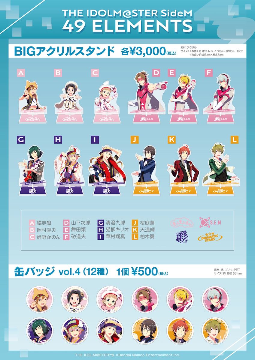 THE IDOLM@STER SideM 49 ELEMENTSシリーズリリース記念グッズ、第4弾の発売が決定しました!
