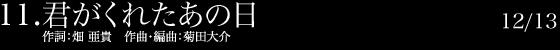 セカンドシングルは「純白サンクチュアリィ」と並ぶ、いや、もしかしたらそれ以上かもしれない大作となりました。アルバムの終盤を飾るのに、これ程ふさわしい曲はないともいえます。もはや余計な言葉は必要ないでしょう。茅原さんにとっても、ファンひとりひとりにとっても、とても大切な宝物となったこの曲を聴けば、きっと胸が熱くなるはず。「君がくれたあの日」がこの位置に来たことにより、「Contact」は最高のクライマックスを迎えられました。