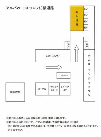 販売開始時刻は9:00~、サンシャインシティ アルパ2F LOFT横スペースにて予定しております。(地図参照)