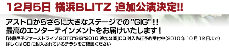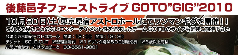 後藤邑子ファーストライブGOTO"GIG"2010 追加公演の特別先着先行予約を行います!
