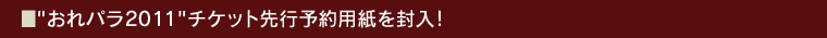 初回プレス分には初回限定盤、通常盤ともに"おれパラ2011"チケット先行予約用紙(シリアルナンバー入り)を封入!!