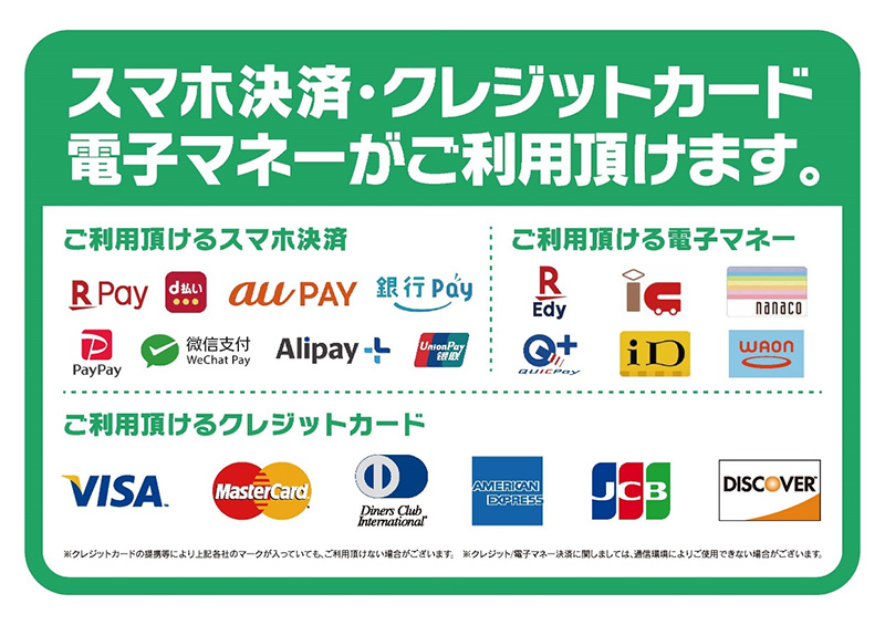 ・お支払いは現金・各種キャッシュレス決済がご利用いただけます。