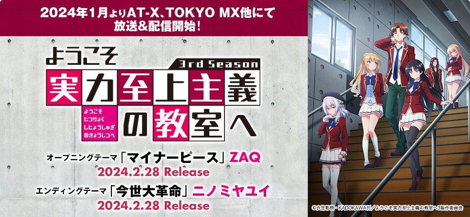 ZAQ|【1月13日】TVアニメ『ようこそ実力至上主義の教室へ 3rd Season』オープニングテーマ「マイナーピース」発売記念インターネットサイン会 開催決定!